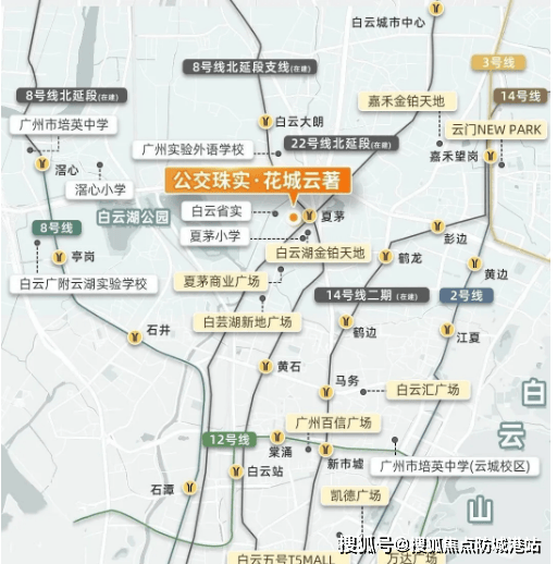 公交珠实·花城云著的地舆十分优胜,交通出行极为便利,无论是公共交通仍是自驾出行,都能满脚业从的多样化需求。正在公共交通方面,项目距离地铁22号线号线米,完全实现“正在口坐地铁”的便利体验,是实正的双地铁上盖项目。此中,22号北延线做为广州南北大动脉,时速达160公里,贯穿空港、白云棠溪、广州火车坐、南坐等7大枢纽,全线处之多,可以或许无缝接轨广州全市。乘坐22号北延线号线坐即可中转珠江新城(冼村),极大地缩短了取市核心的通勤时间。8号线北延段干线则可快速抵达越秀、花都等地,起广州北坐和白云棠溪TOD,进一步拓展了出行范畴。此外,还有一条地铁24号线正正在规划傍边,将来建成后将进一步提拔项目标交通便当性。自驾出行方面,项目出门即可跟尾机场、华南快速、机场高速等城市从干道,通过这些从干道可快速抵达白云新城、荔湾、越秀、机场等区域,无论是日常通勤仍是节假日出行,都十分便利高效。